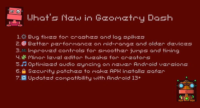 The 2.2.143 update brings fresh improvements, smoother gameplay, and a few exciting additions that keep Geometry Dash sharp and addictive. It’s not a major content drop, but definitely worth the upgrade for serious players.